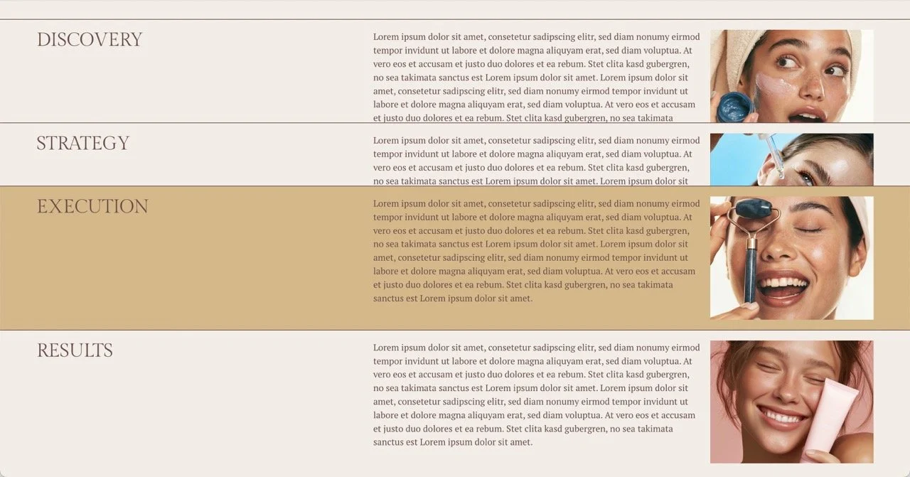Step into 'Beauty,' a Squarespace web template designed for bold beauty professionals who want to create a captivating, luxurious online presence. Whether you specialize in skincare, beauty treatments, or wellness services, 'Beauty' is crafted to highlight your artistry with elegance and a playful edge, bringing out the vibrancy of your brand.