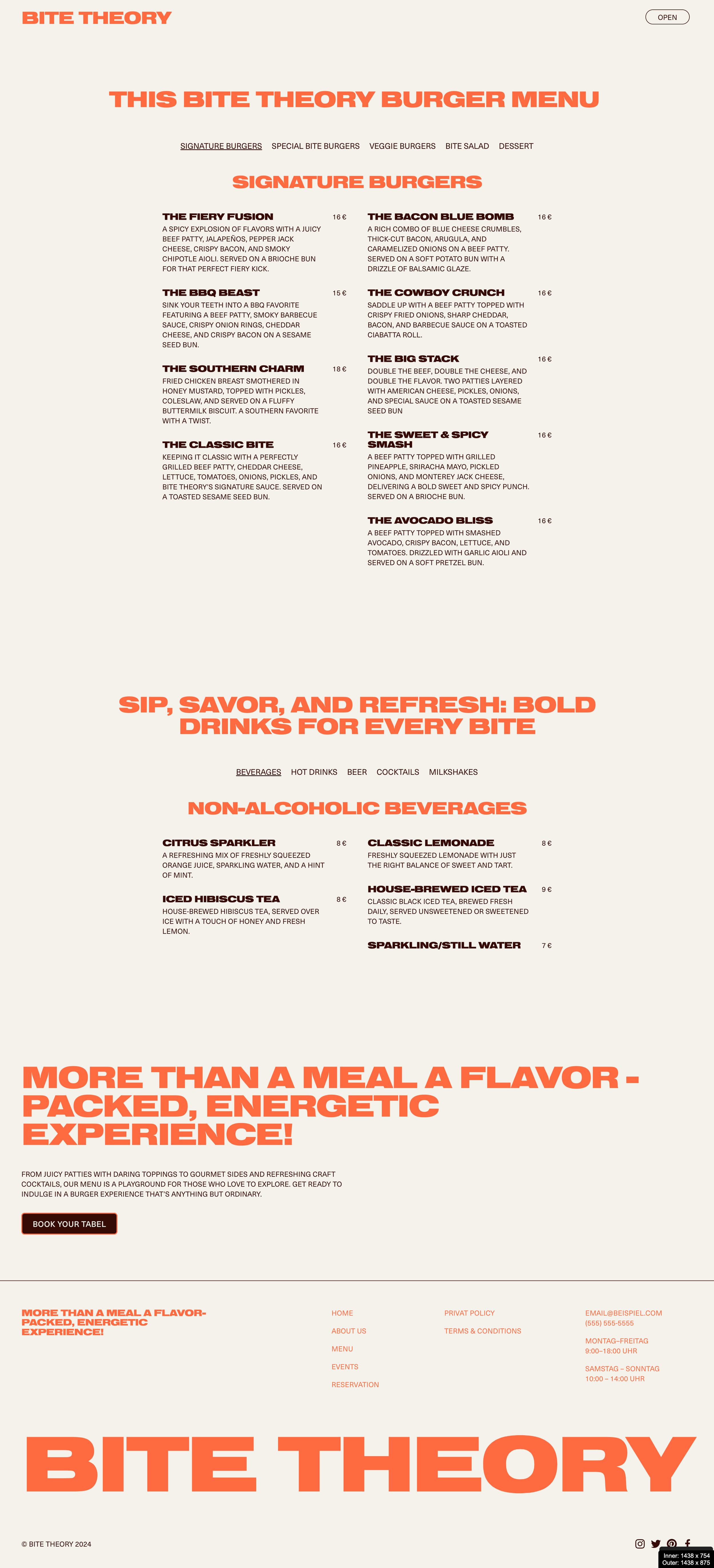 This versatile template empowers you to create a professional, appetizing website, so you can focus on grilling the perfect burger while 'Bite Theory' handles the design.